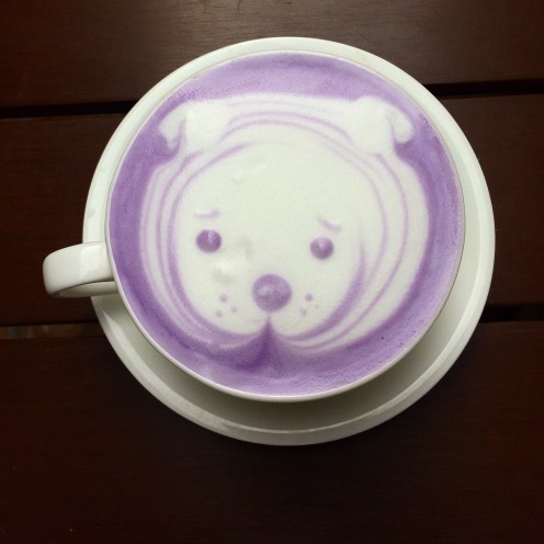 Yup. It’s a latte (certified with the latte art), it’s made from taro root, and above all, it’s purple! The perfect shade of lavender with a milky smooth texture sets this apart from any tea latte I’ve ever had. Granted it’s not really tea, but are we really concerned about that? Psh, nope. That means the kiddos can enjoy it too, so… winning! As fun and colorful as this drink is, it’s just as sweet too. So sweet, that I’d only have it for dessert. My friend says it reminds her of Smurfs cereal from back in the day.