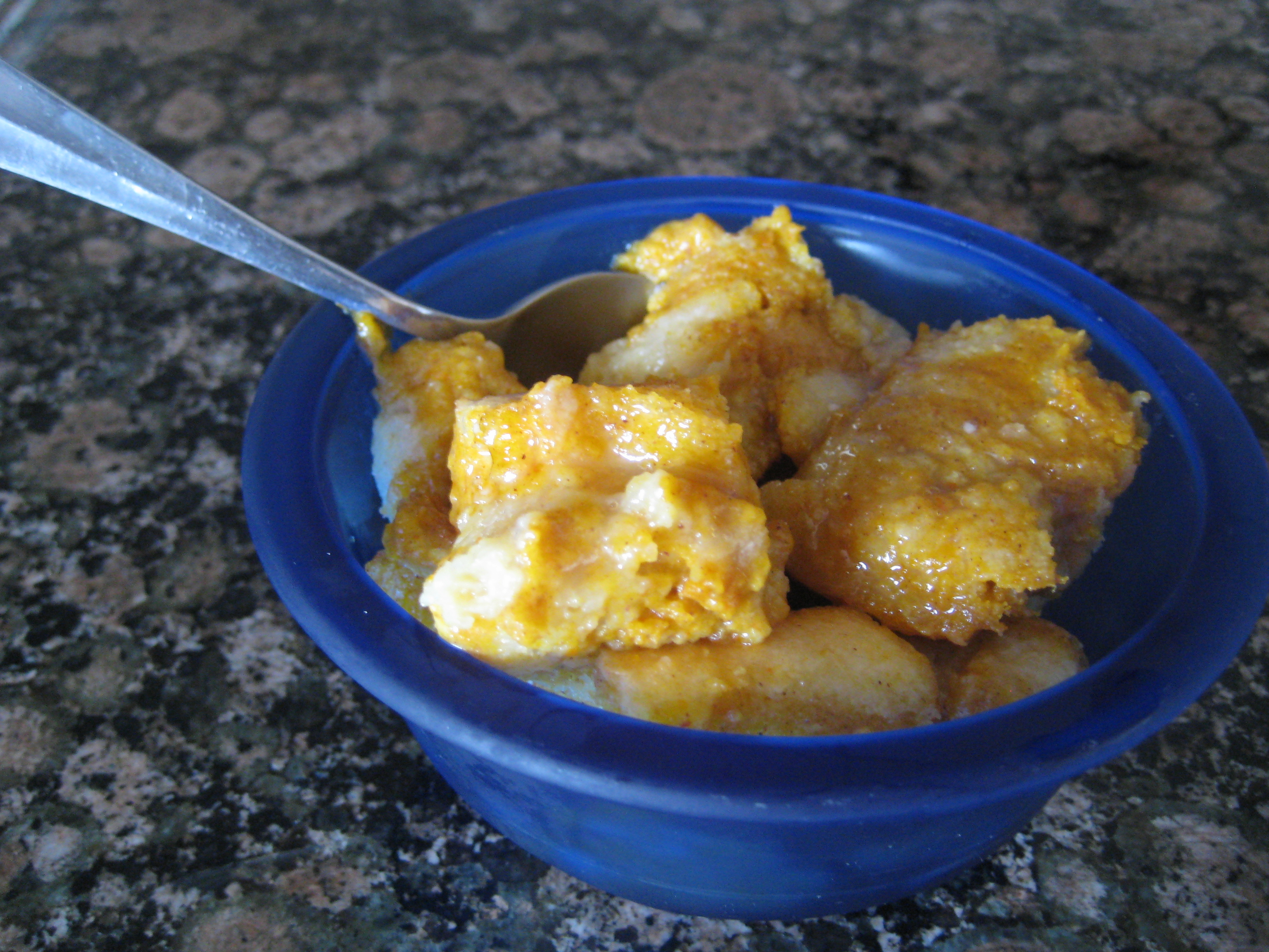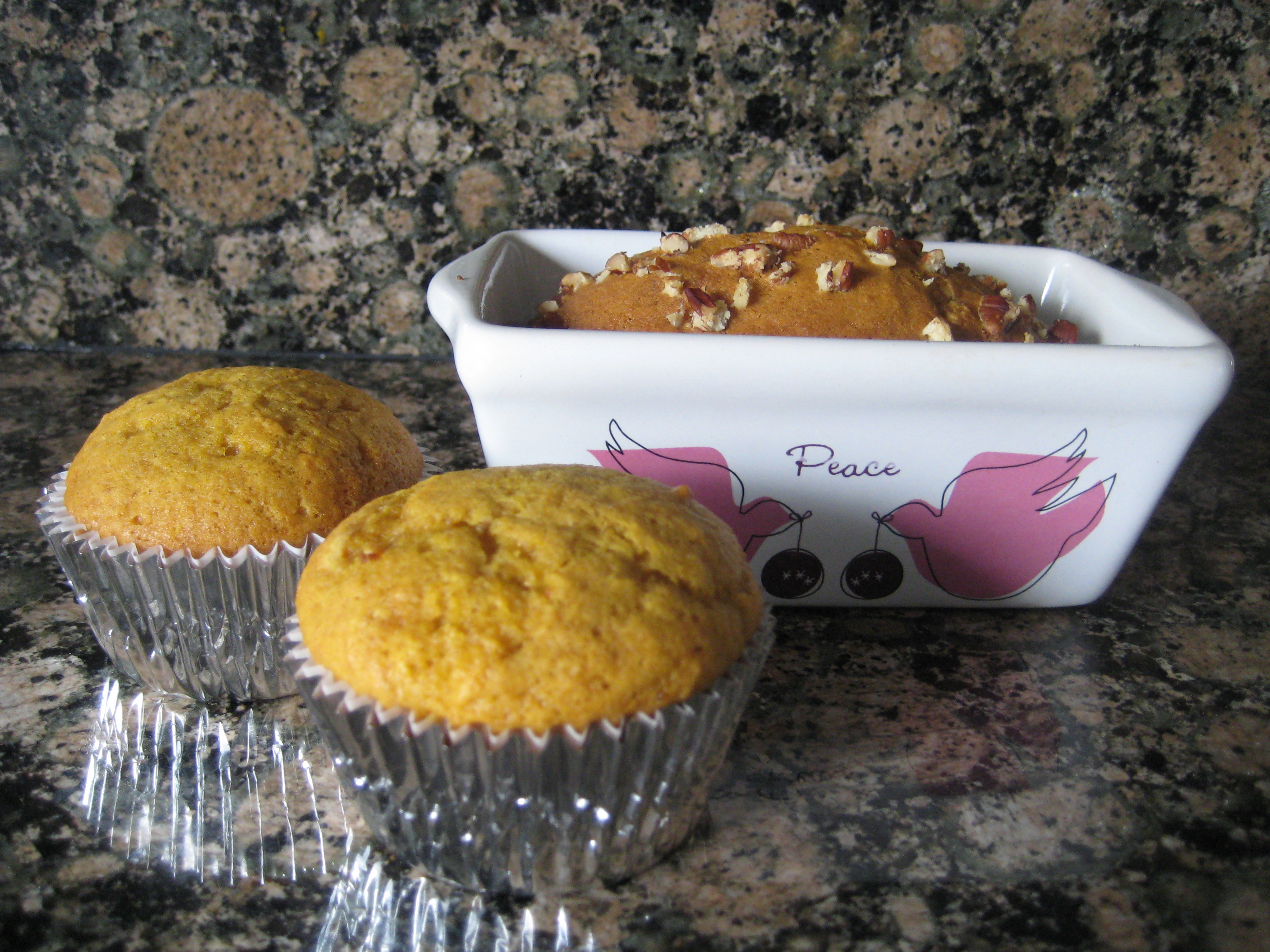 So I bought this can of pumpkin not knowing what type of edible it would end up in. I searched about 20 (literally) recipes on numerous sites and finally decided what to do with it. Unbeknownst to me, pumpkin recipes don’t really require all that much pumpkin, so with one can I was able to make two yummy desserts!
