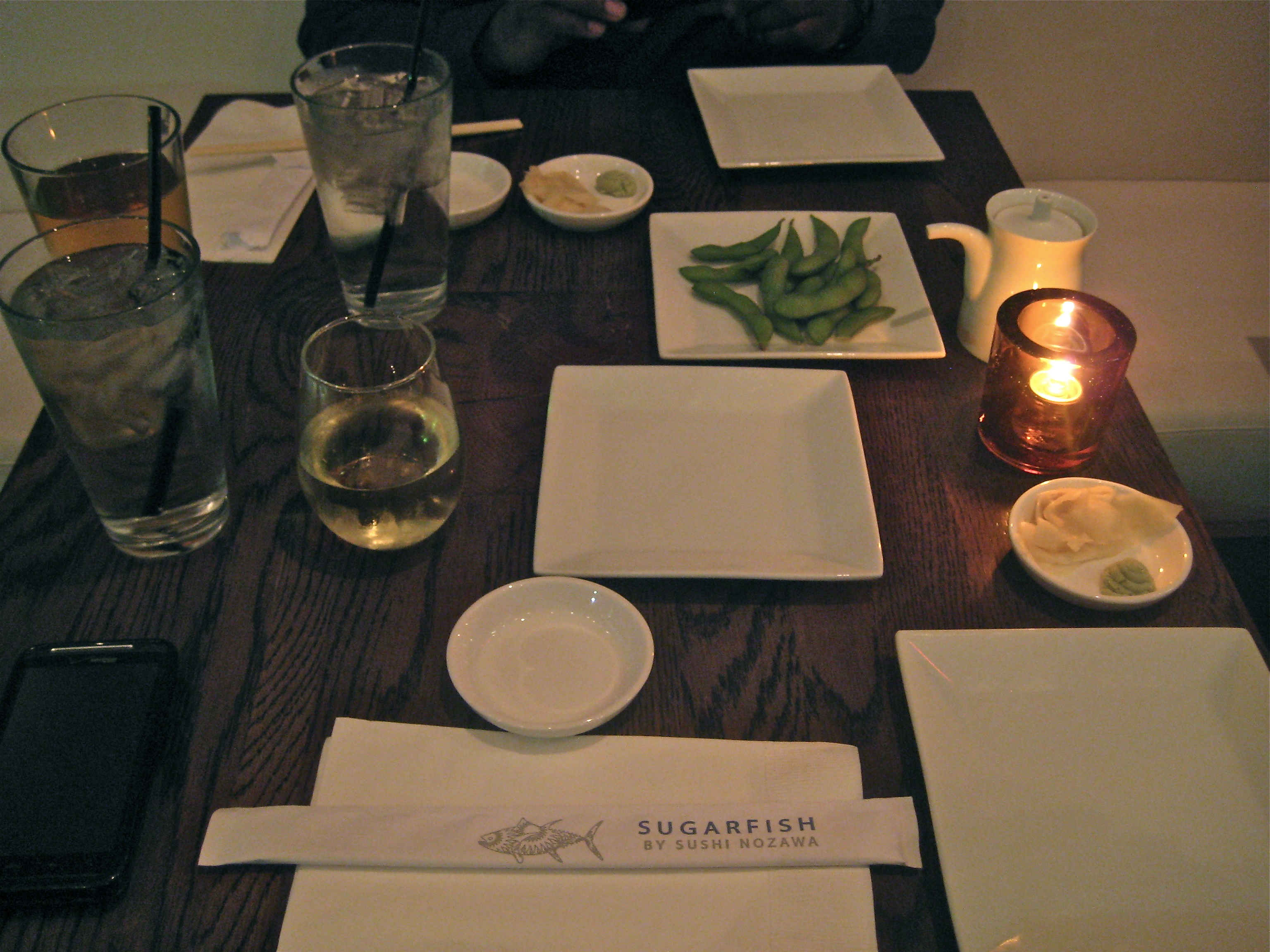 The menu is very simple. Mostly nigiri sushi, a few hand and cut rolls and sashimi. They also have a “trust me” option on the menu where you eat what the chef recommends. Naturally we went for the “Nozawa”, the option with the most types of sushi (we were pretty famished).