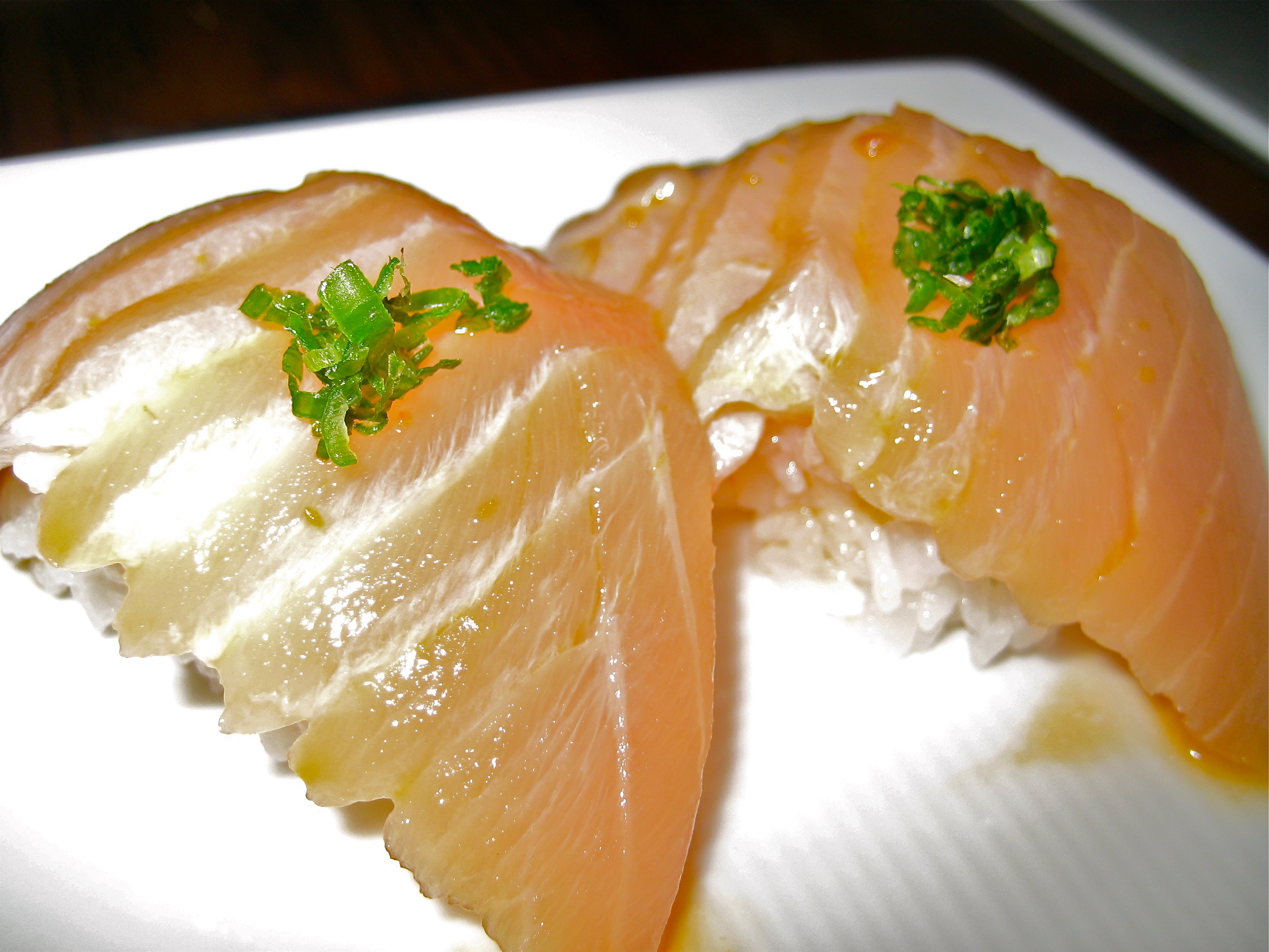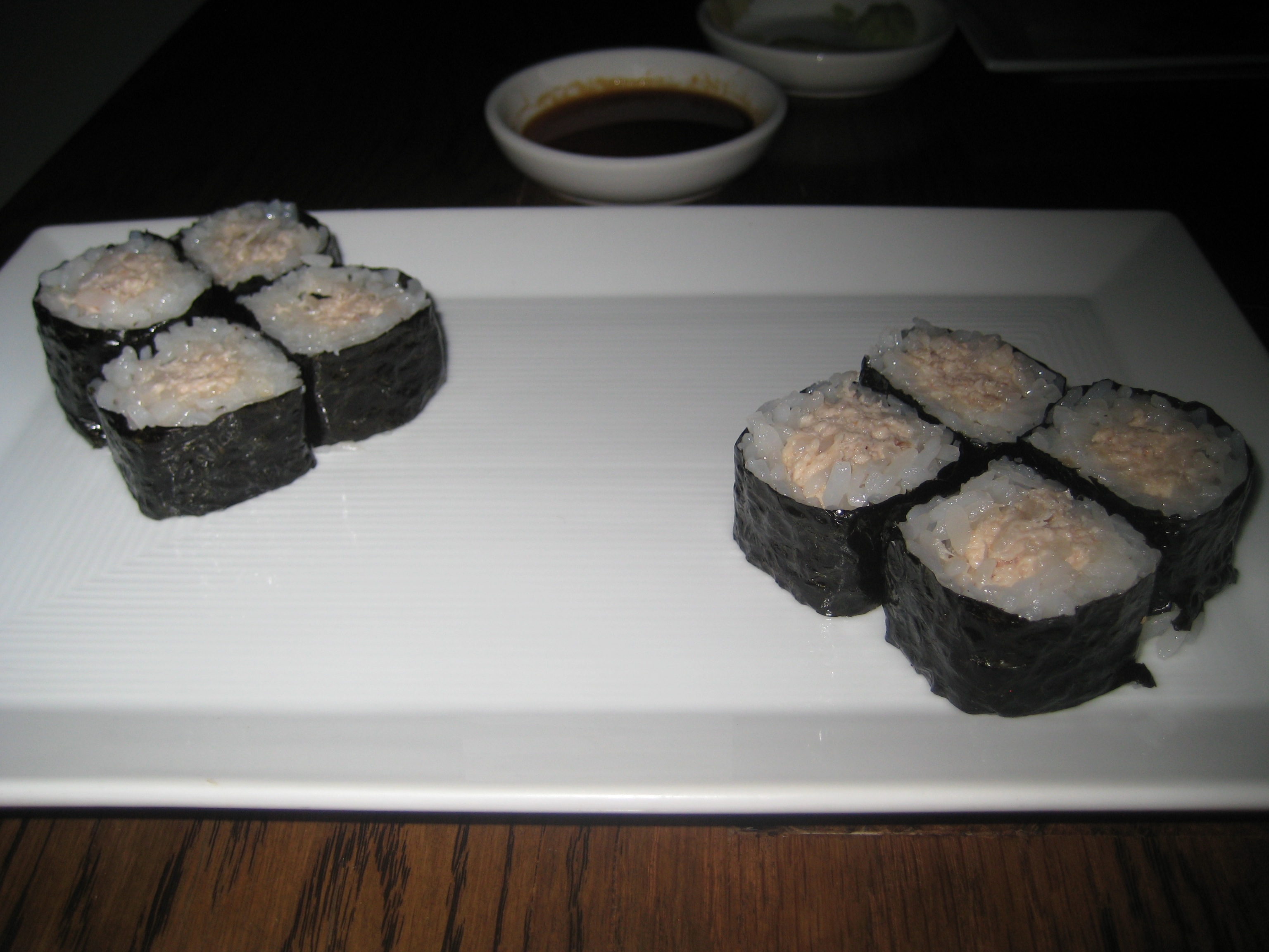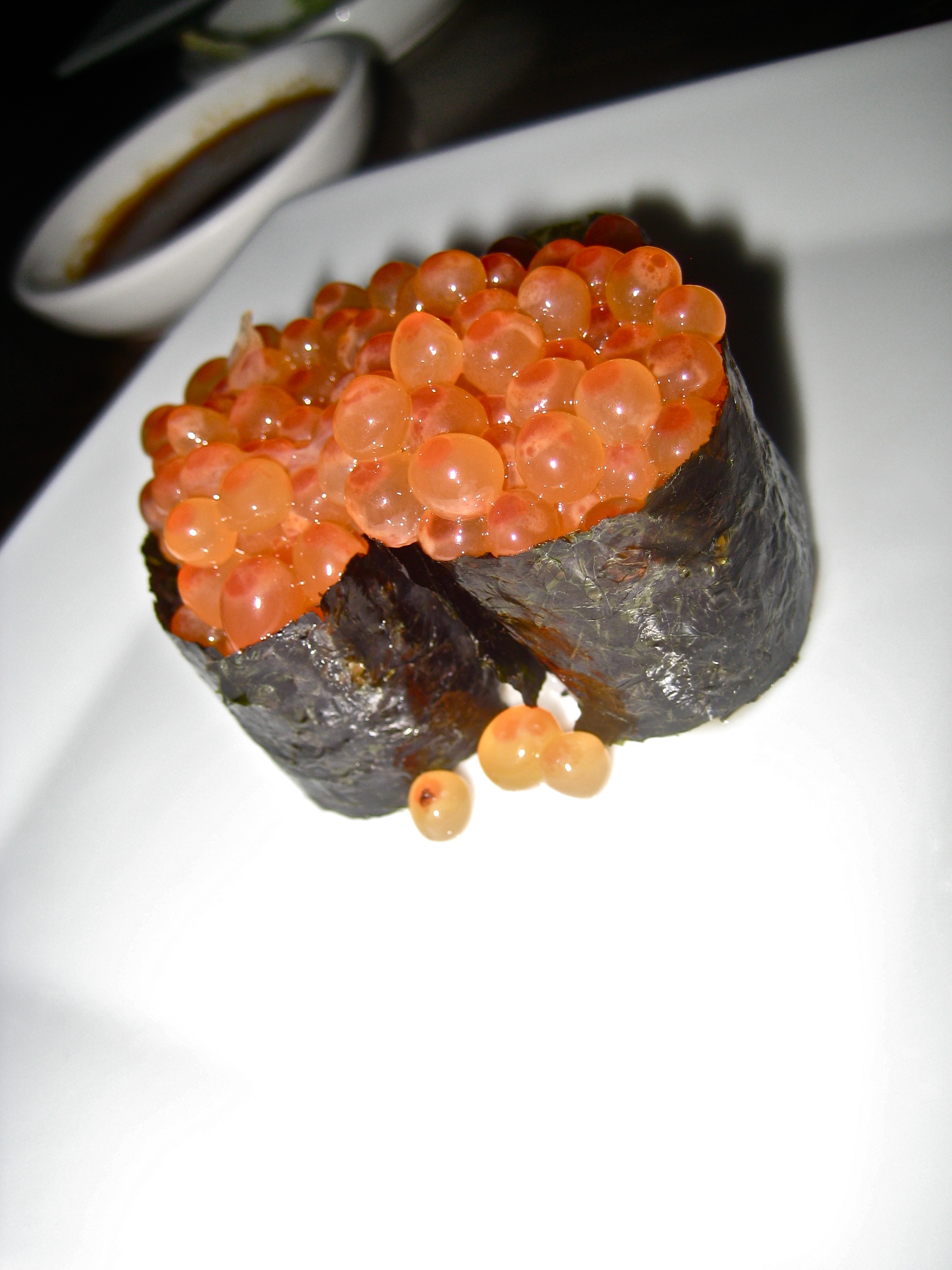 After we ate everything in the Nozawa, our bellies desired more deliciousnes. We ordered Nozawa shrimp, bay scallops, a yellow tail handroll and a blue crab cut roll. Then my brother pulls something out of the dusty corners of his funny little hat by suggesting we get salmon eggs.