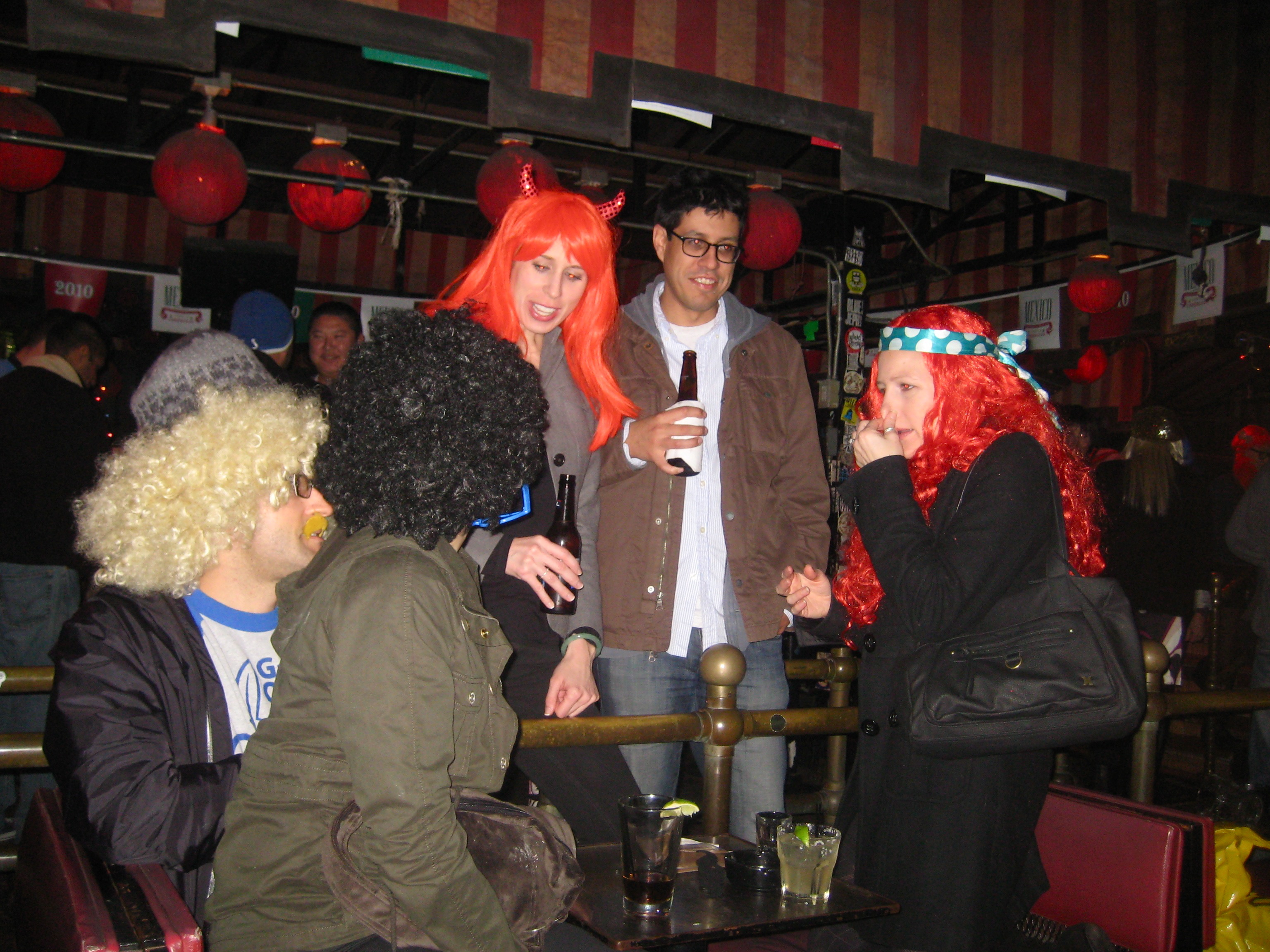 My friend “Honey” is infamous for having the best themed parties. 80s sports, old school television shows, ailments and injuries… this year was “Wigs and Staches”