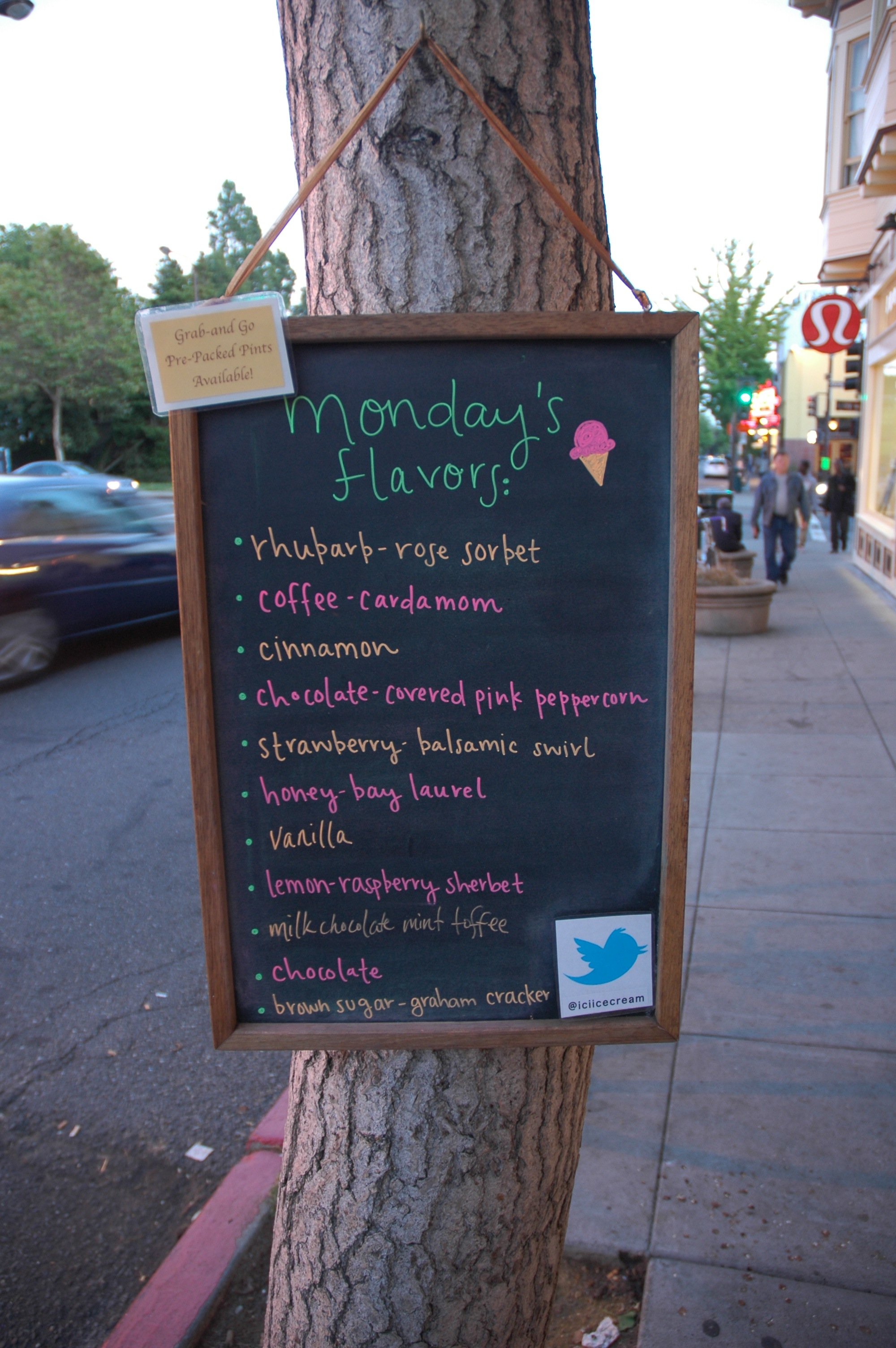 Rohya’s favorite ice cream place, Ici is where we were destined. We picked up her friend, and then headed over. There was a line out the door (always a good sign), and a little menu hung from a tree out front to help with the decision making process.