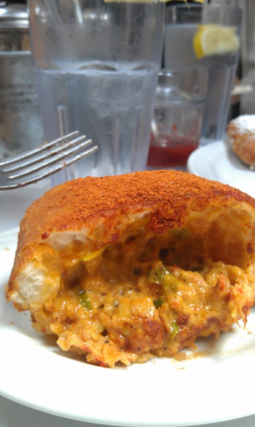 Once we were seated, we each ordered a watermelon tea, and decided to share a flight of their beignets. The tea tasted just like watermelon (not a good thing for me. I was hoping it would taste more like tea, but how do you know unless you try?). All of the beignets were pretty tasty, but my absolute fave was the crawfish beignet. It was a tad spicy, but super delish!
