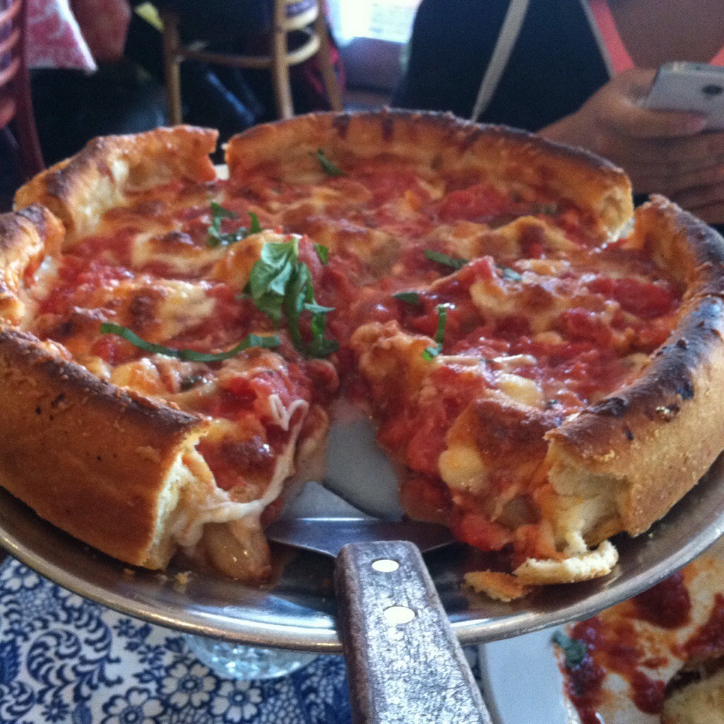 They are an Italian restaurant that specializes in Chicago style deep-dish pizzas. They use local, organic produce, and their dough is baked fresh daily too! They even have vegetarian and vegan deep dish options! I mean, can you say “winning”?
