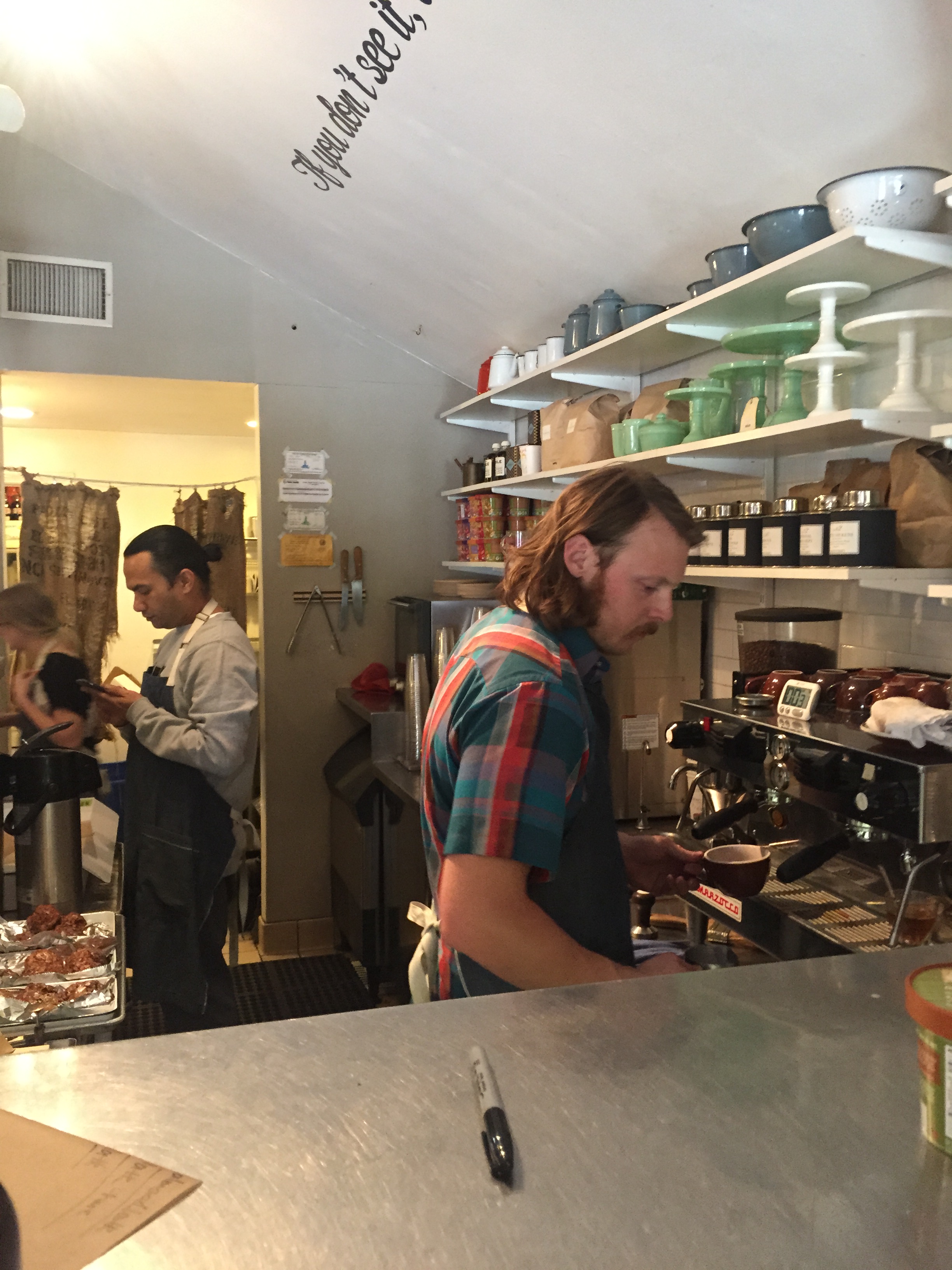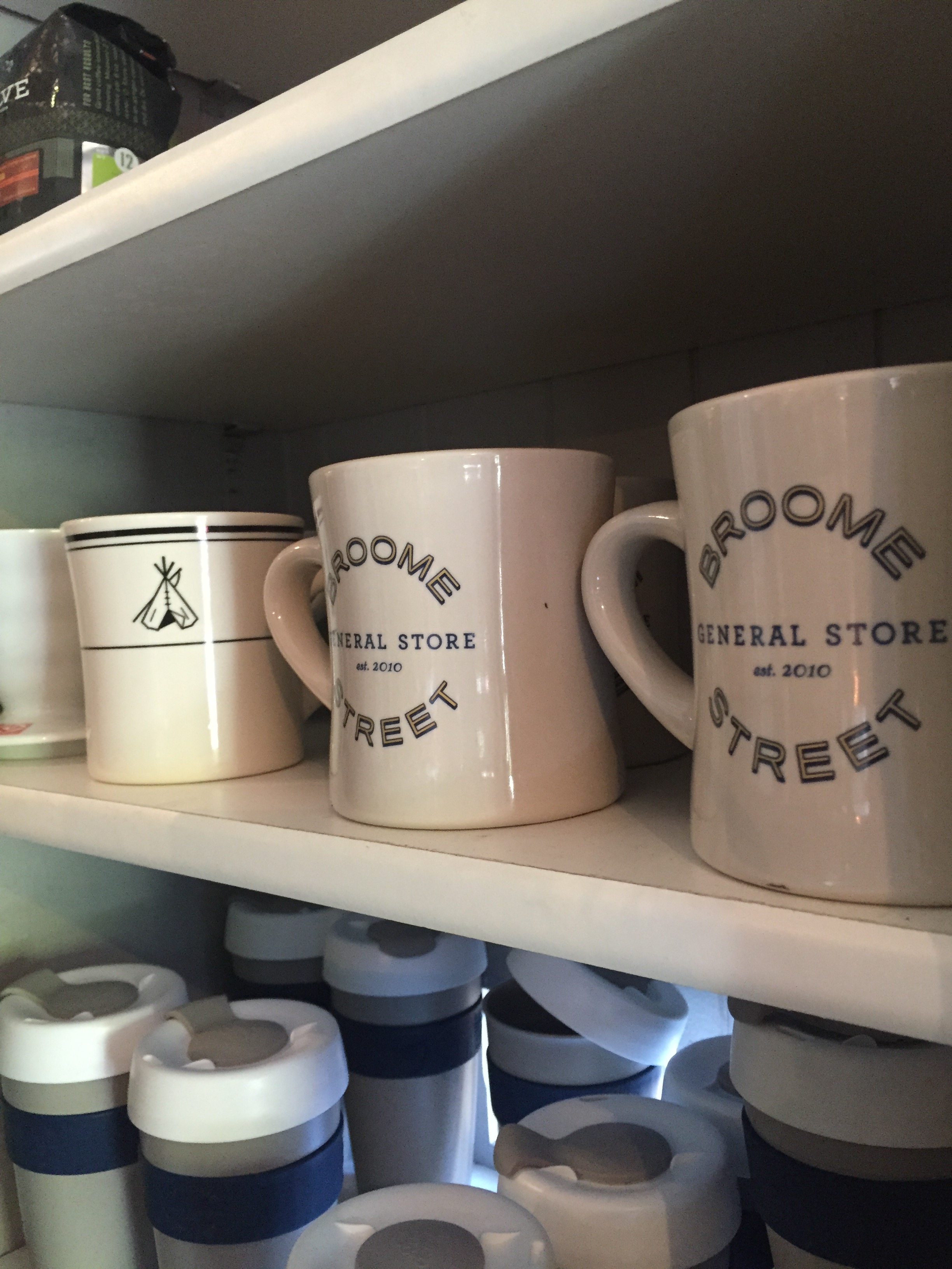 Sometimes a great coffee house offers you more than just great coffee. We’ve seen that in a few of the previous posts in this series, and Broome Street is definitely no exception. In addition to their coffee there is a selection of clothing, toiletries, home goods, groceries, and as the wall art says, “If you don’t see it ask for it”!