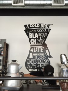 All of the items that decorate this place are old, and/or vintage looking.  There’s a set of old books, a couple of singer sewing machines, and a old dresser with pistol accents.  There is a cozy window seat, a couple of bar stool chairs and more seating outside.  Lots of local artists’ work hangs from the walls, while music flows through the speakers.  It’s one of the most chill atmospheres I’ve seen for a coffee spot.  You won’t find too many people getting the screenplays done here, but contrarily they are more likely socializing with friends.  After all, isn’t that what coffee is all about?